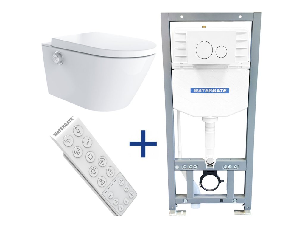 Sprchovací toaleta WATERGATE INTEGRA+ Premium s WATERGATE EASYFIX PLUS montážním prvkem pro závěsné WC, kompatibilní s tlačítky Geberit sigma.