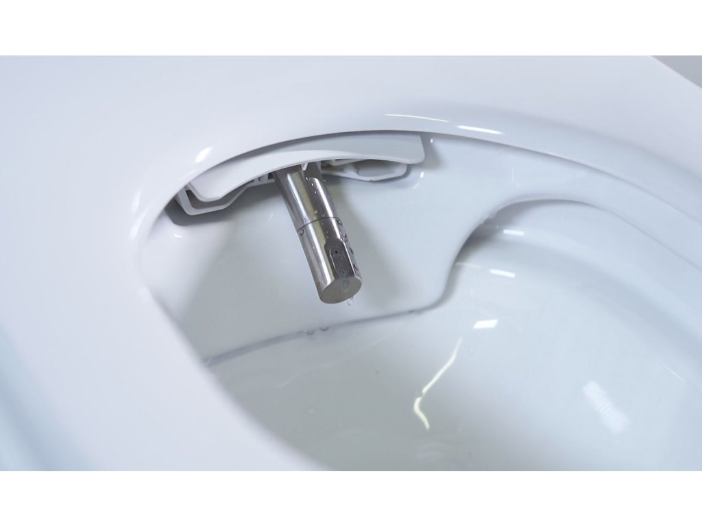 Účinné a šetrné bezokrajové splachování WC mísy s technologií RimFree/Rimless. WC mísa bez uzavřeného oplachovacího kruhu výrazně usnadní jinak složité čištění vnitřku toalety. Automatické samočištění sprchové trysky, před zahájením i po ukončení každého mycího cyklu, zajistí maximální čistotu jemného výsuvného mycího zařízení, které se dokonale polohově přizpůsobí potřebám každého uživatele. Praktické rychloúchyty umožní snadné odejmutí toaletního prkénka pro běžnou údržbu exteriéru keramiky s hladkou glazurou velice odolnou proti znečištění bakteriemi a jinými mikroorganismy. Přívod vody pro spršku je opatřen skrytým vyměnitelným filtračním systémem přívodní studené vody, kterou si INTEGRA+ dohřeje na požadovanou teplotu.