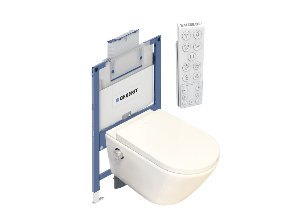 Sprchovací toaleta WATERGATE INTEGRA+ Premium s GEBERIT DUOFIX montážním prvkem pro závěsné WC, 82 cm, se splachovací nádržkou pod omítku OMEGA 12 cm. Vhodné konstrukce prováděné suchým procesem.