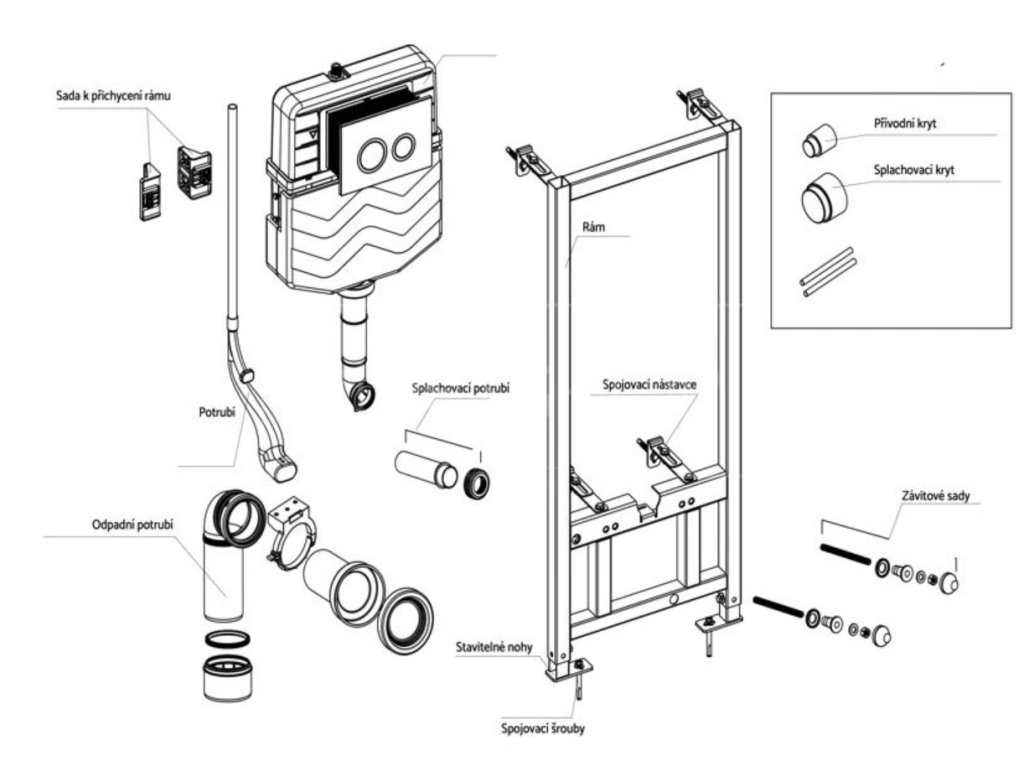 - Konstrukce rámu dovoluje kotvení k samostatné dostatečně nosné sádrokartonové příčce nebo před nosnou stěnu
